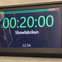Golvstående vinklad bildskärm för att visa PowerPoint presentationer eller utgående bild. Formen framtagen för att diskret smälta in bland scenmonitorer på scenen.